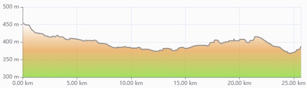 Más adelante camino transita por las Dehesas del Garabato de arriba y de la Falsa, que nos lleva por esta última hasta la pista del Aeródromo de La Cervera, donde practican sus vuelos los socios del Aeroclub Cáceres. Como se informa en un cartel, la prohibición de paso no afecta a los peregrinos. Desde este punto nos quedan 6 km para llegar al final de esta etapa.