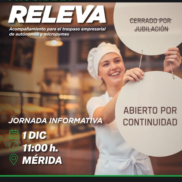 El próximo 1 de diciembre en Mérida participa en la jornada informativa del Programa Releva, que tiene como objetivo facilitar la continuidad de las empresas de...