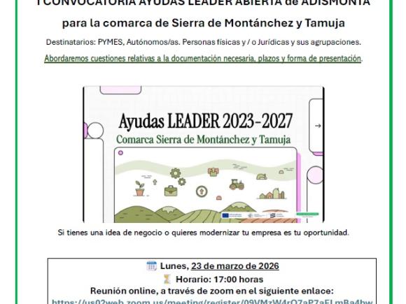 Sesión Informativa ON-LINE I Convocatoria de Ayudas LEADER de ADISMONTA para la comarca de Sierra de Montánchez y Tamuja