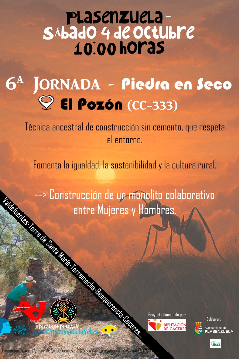 La Asociación Juvenil Víctor, de Valdefuentes, a través del proyecto “Pizza con Piña”, con la financiación de la Diputación de Cáceres, organiza la 6ª Jornada de Piedra en Seco: