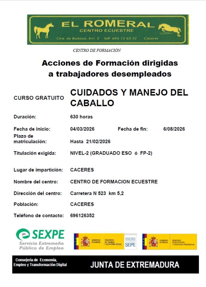 • Entidad: EL ROMERAL DE CACERES SL / CENTRO ECUESTRE DE FORMACIÓN EL ROMERAL